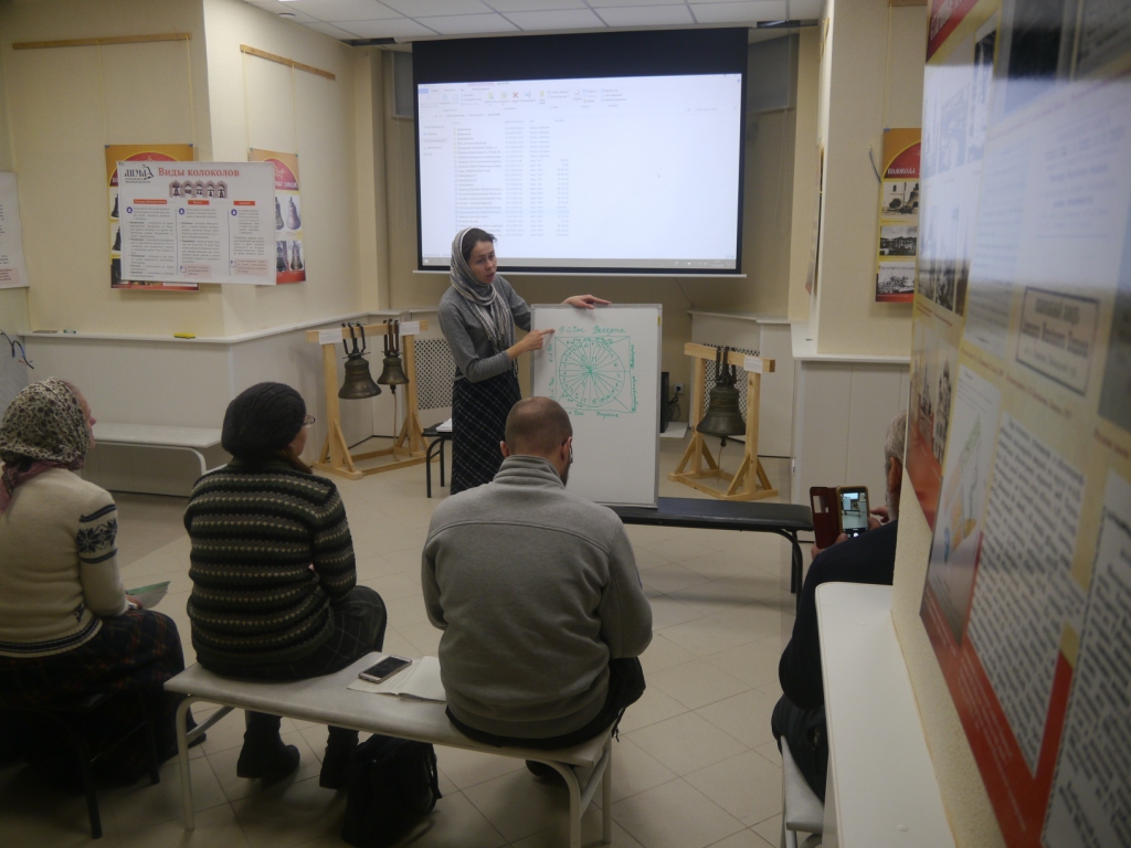 Занятия проходили ежедневно с 9 часов утра и заканчивались вечером. В столь сжатые сроки курсантам предстояло освоить очень большой объем важной информации, а также овладеть основными видами колокольного звона. Уже в первый день обучения все попробовали исполнить будничный звон на колокольне Иоанно-Богословского храма. Затем ежедневно, после учебного дня, курсанты самостоятельно совершали звоны перед началом вечерней службы, а также после ее окончания. Не смотря на суровые погодные условия — а именно во второй день курсов пошел сильный снег, началась настоящая зима – обучающиеся на хорошем уровне выполнили все учебные задания. Благодаря упорным тренировкам и большому стремлению каждого из участников курсов, выпускные экзамены по теории и практике звона были успешно сданы всеми. После молебна благодарения, прошло вручение сертификатов об окончании звонарских курсов. На праздничном чаепитии новоиспеченные звонари делились впечатлениями о курсах, экзаменах, писали отзывы.